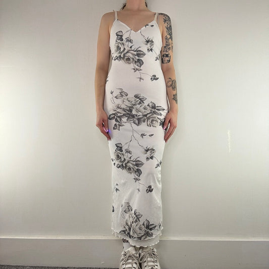 Y2K vintage floral maxi dress netted lettuce hem stretchy v neck gothic summer