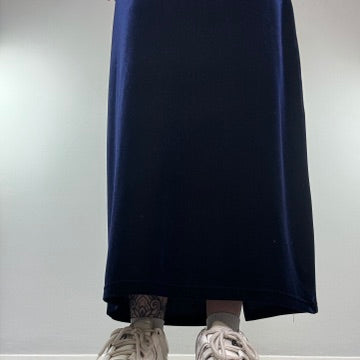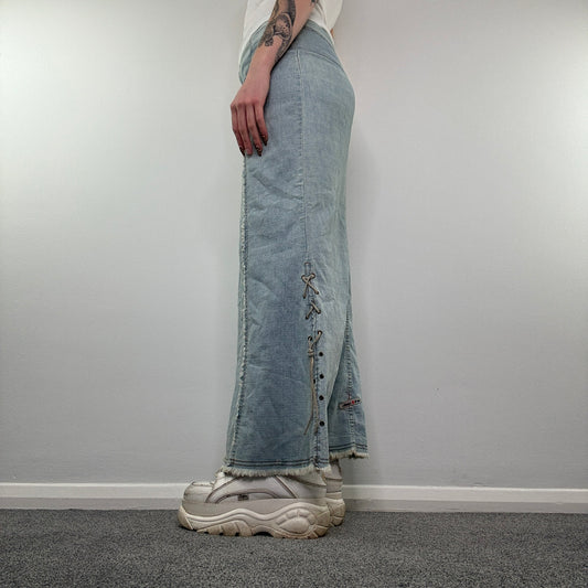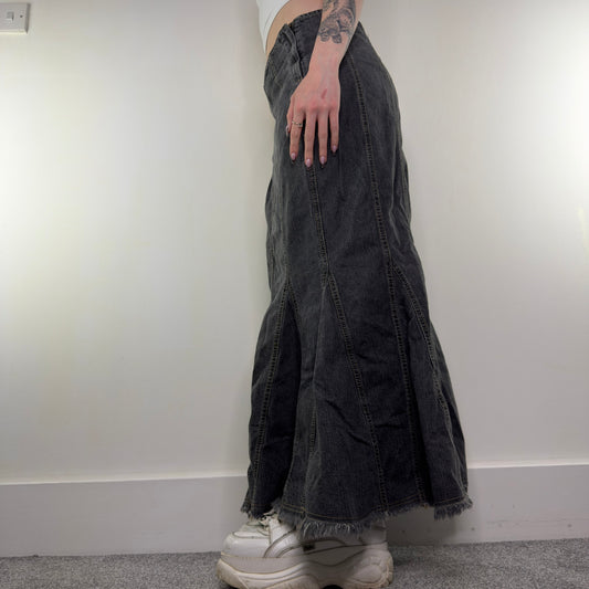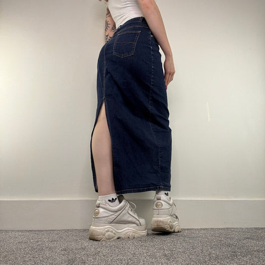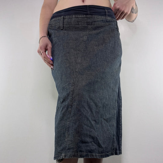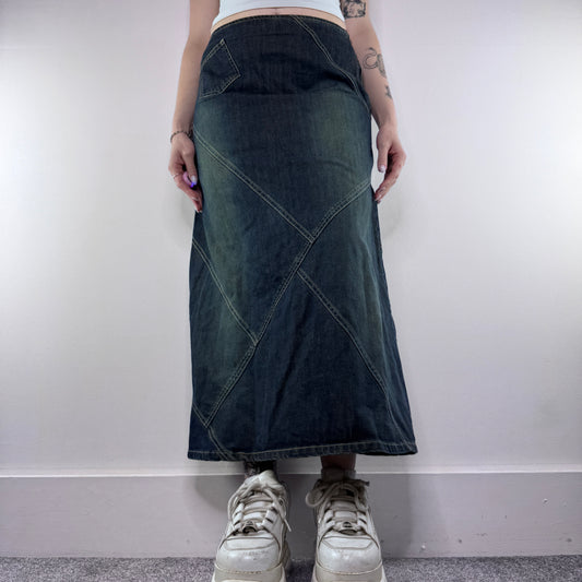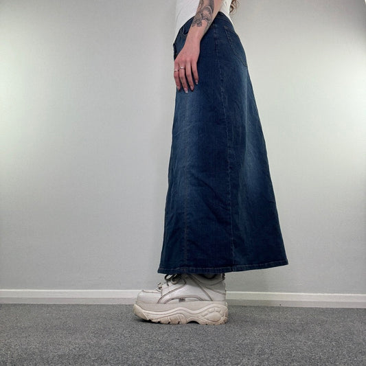Y2K vintage denim maxi skirt straight high split contrast stitch high waist
