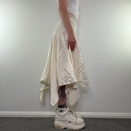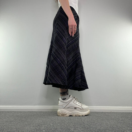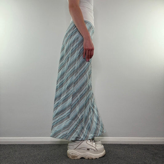 Y2K vintage asymmetrical satin floaty striped maxi skirt
