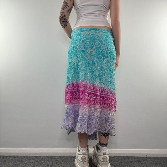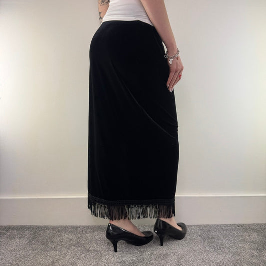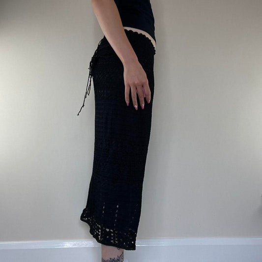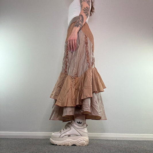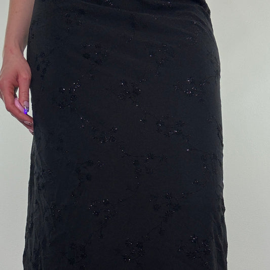 Y2K vintage maxi skirt sparkly glitter mesh overlay lettuce hem