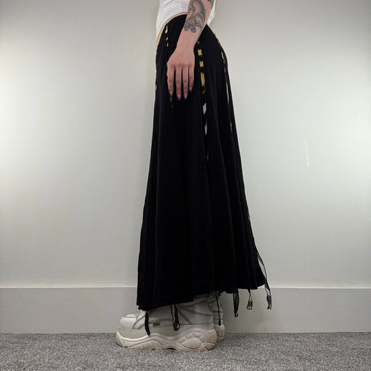 Y2K vintage mesh maxi skirt leopard print tassel archive avant garde piping