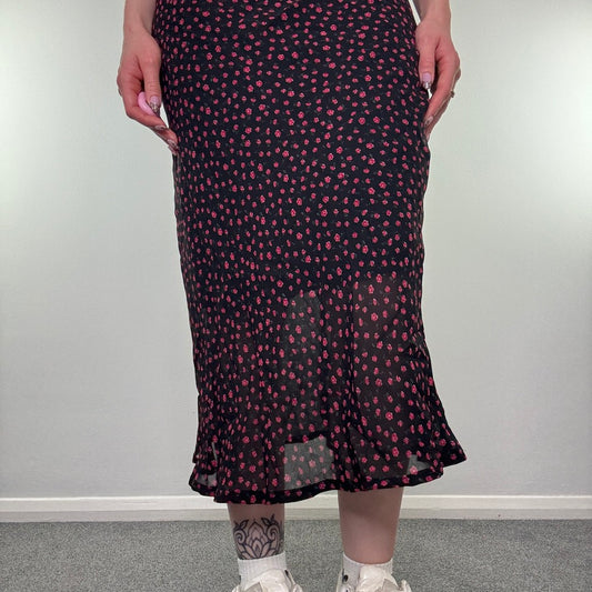 Y2K vintage low rise ditsy floral sheer maxi skirt