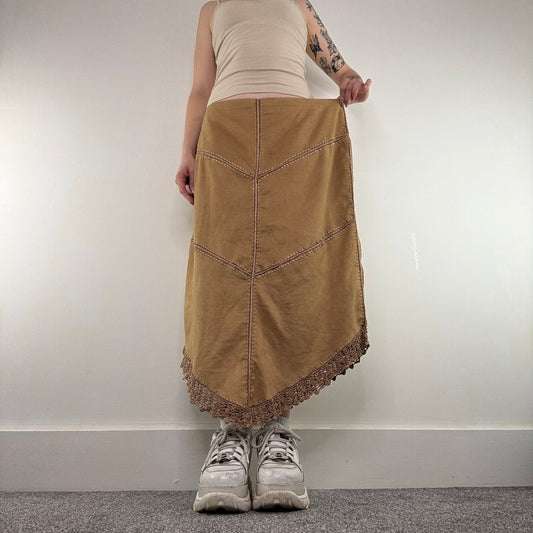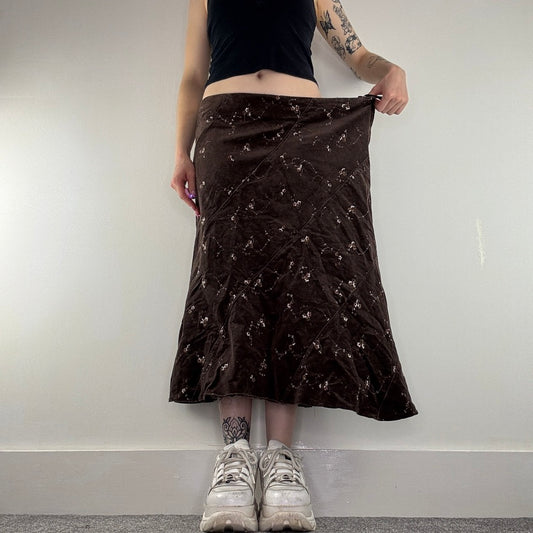 Y2K vintage maxi skirt floral embroidered corduroy plus size