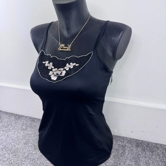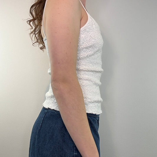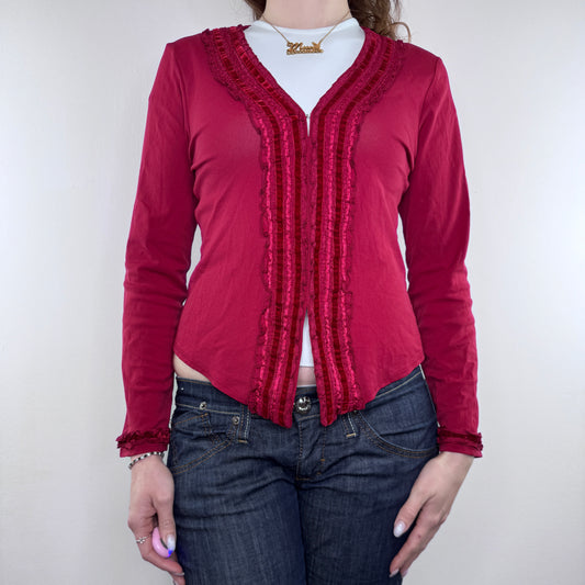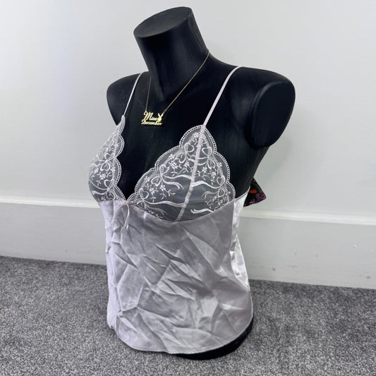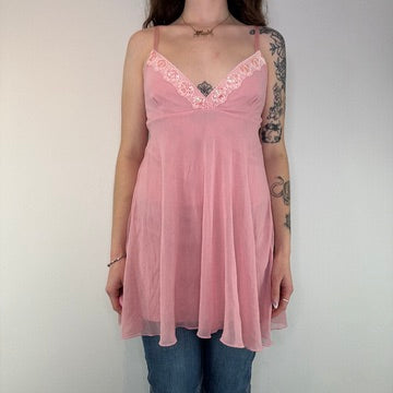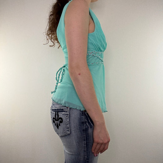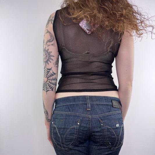 Y2K vintage Jane Norman top mesh tank v neck lettuce hem overlay bow floaty