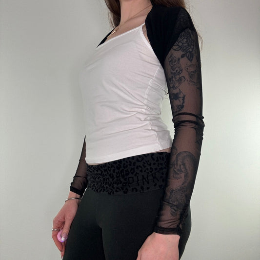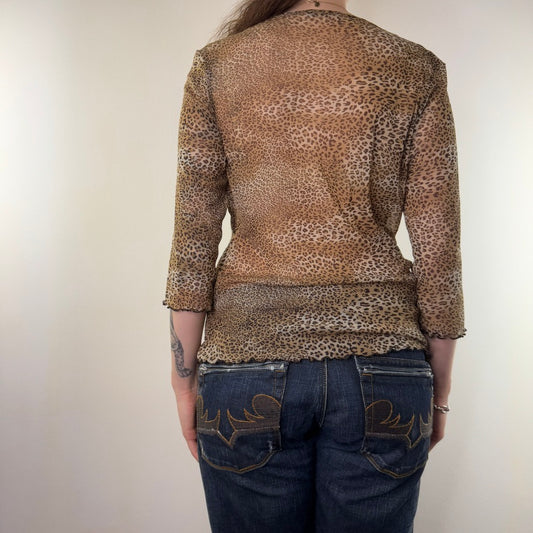 Y2K vintage leopard print mesh 3/4 sleeve top