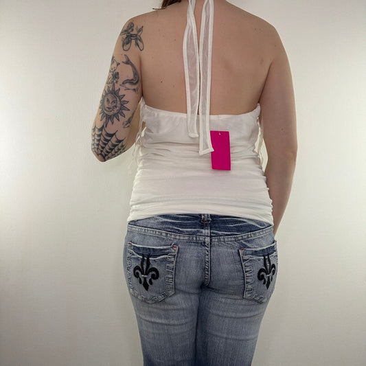 Y2K vintage halter neck top mesh ruched rave clubbing