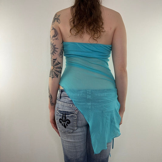 Y2K vintage strapless top asymmetrical mesh ruched ruffle lettuce hem