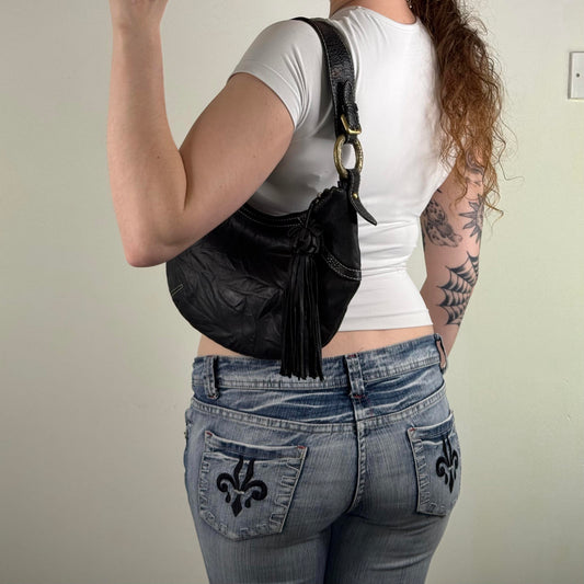 Y2K vintage genuine leather shoulder bag butter soft fringe charm hobo slouchy