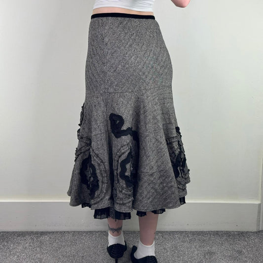 Y2K vintage Per Una wool blend maxi skirt a line frill hem pleated herringbone