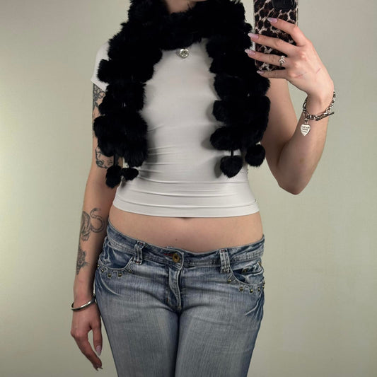 Y2K vintage fine knit stretchy fitted top deep round neckline sleeveless buttons