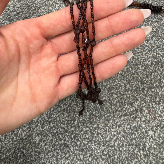 Y2K vintage beaded fringe skinny thin belt decorative layered brown beads