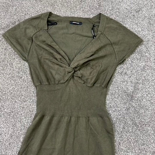 Y2K vintage Morgan De Toi mini dress fine knit stretchy fitted khaki v neck