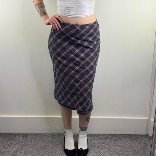 Y2K vintage wool blend tartan midi skirt a line purple grey preppy
