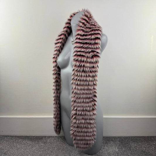 Y2K vintage faux fur shaggy chunky scarf stripe pink navy cream