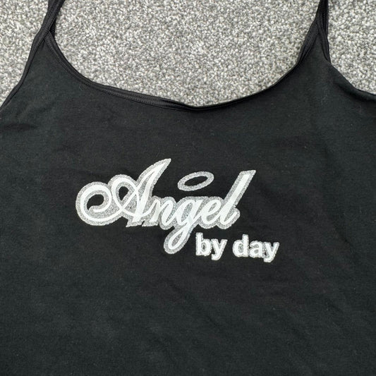 Y2K vintage Ann Summers cami top angel by day slogan sparkly graphic print