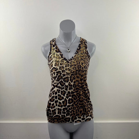 Y2K vintage leopard print sequin tank top racerback v neck sporty