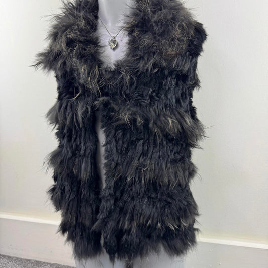 Y2K vintage marmotte/ rabbit lapin fur gilet jacket sleeveless black grey
