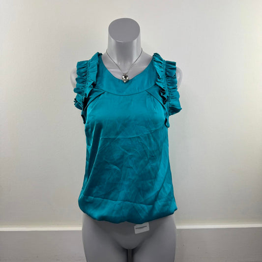 Y2K vintage sleeveless blouse bubble hem ruched ruffle round neck keyhole