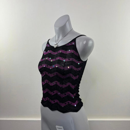 Y2K vintage crochet knit sequin tank cami top high neck scallop hem chevron