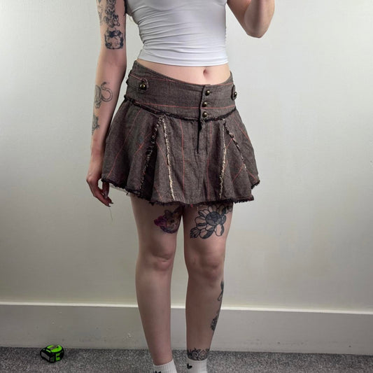 Y2K vintage Bay mini skirt tartan fraying hem buttons buttons orange brown