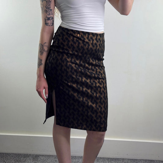 Y2K vintage Morgan De Toi midi skirt thigh slit black gold knee length tailored