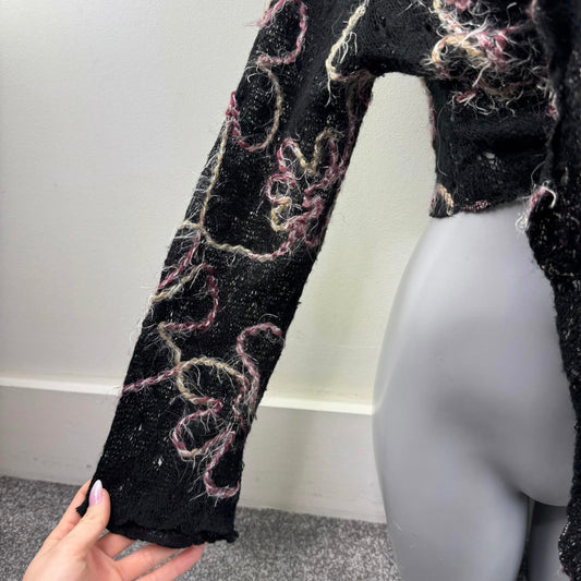 Y2K vintage wool blend knitted cardigan long sleeve cropped floral embroidery