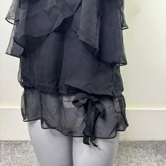 Y2K vintage 100% silk cami top ruffle elastic hem strappy bow layered tiered