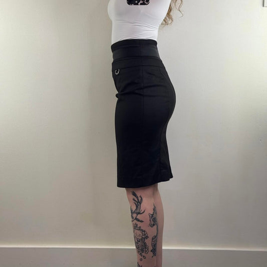 Y2K vintage River Island midi skirt office ruched fitted tailored thigh slit