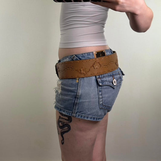 Y2K vintage genuine leather chunky belt floral perforated pattern oversized