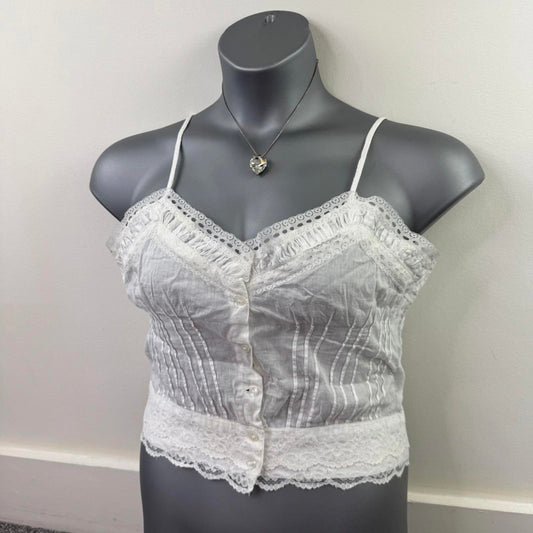 Y2K vintage ruffle cami top strappy broderie anglaise buttons frill