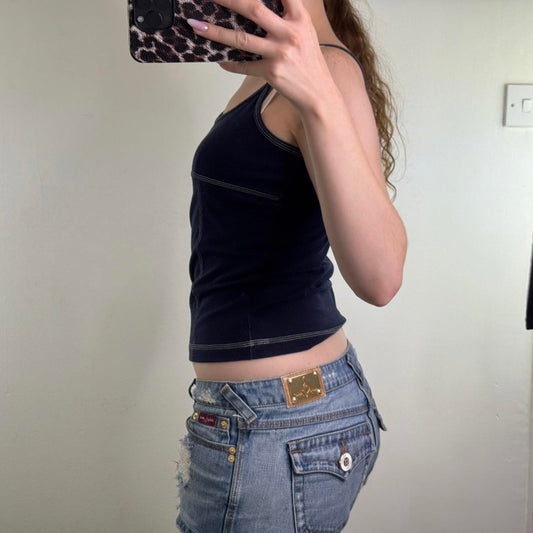 Y2K vintage denim style stretchy cami top strappy contrast stitch sporty