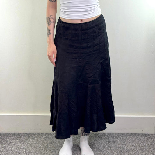 Y2K vintage 100% pure linen maxi skirt pattern hem trim stripe check black