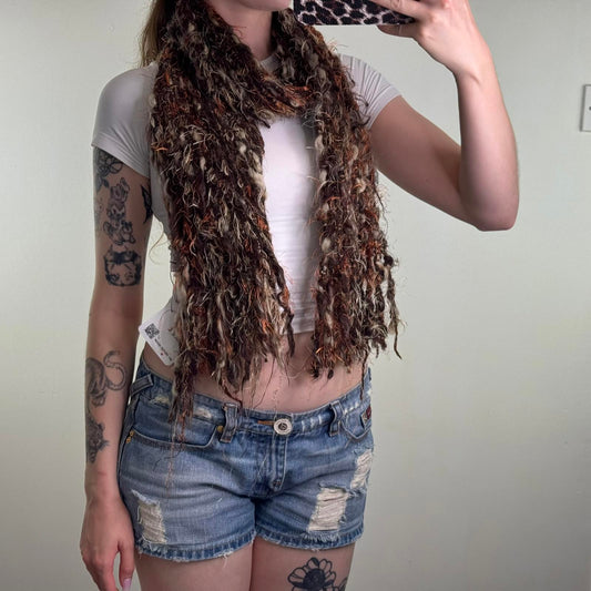 Y2K vintage Per Una wool blend scarf knit fluffy tassel brown cream orange