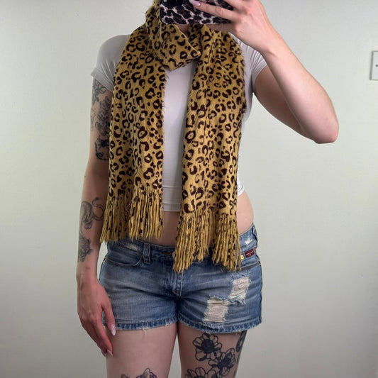 Y2K vintage Evie leopard print fluffy scarf beige brown pattern