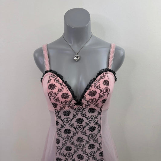 Y2K vintage Ann Summers mesh babydoll filigree baby pink black with suspenders