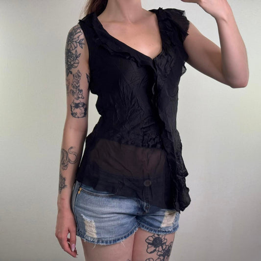 Y2K vintage 100% silk asymmetrical blouse top ruffle tiered v neck cap sleeve