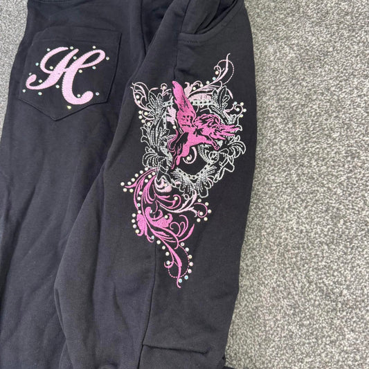 Y2K vintage low rise cropped capri joggers rhinestone embroidery black pink