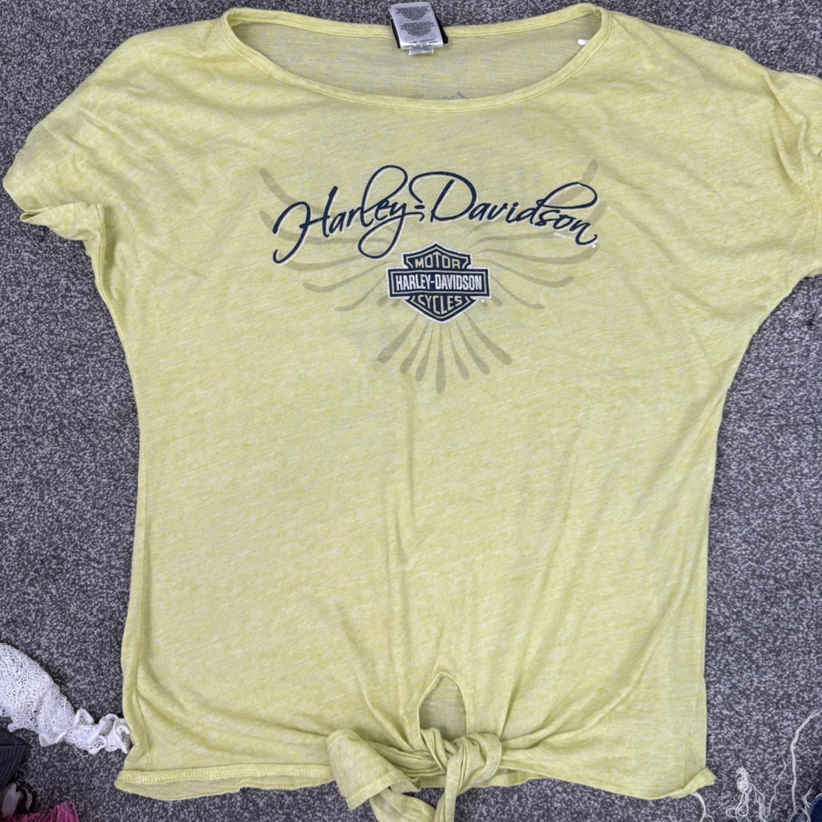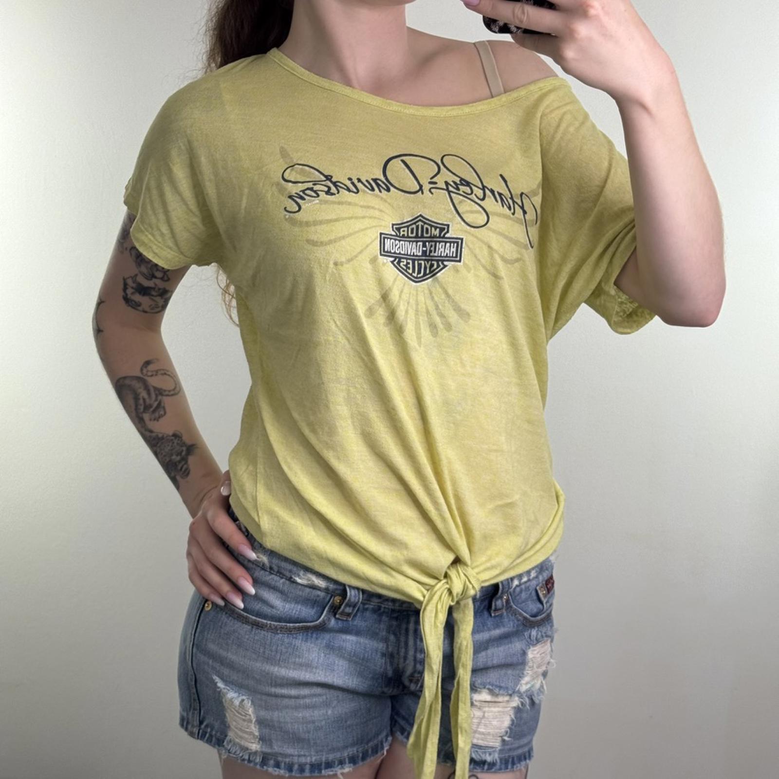 2014 Harley Davidson tribal angel wings slouchy top graphic print tie knot sheer