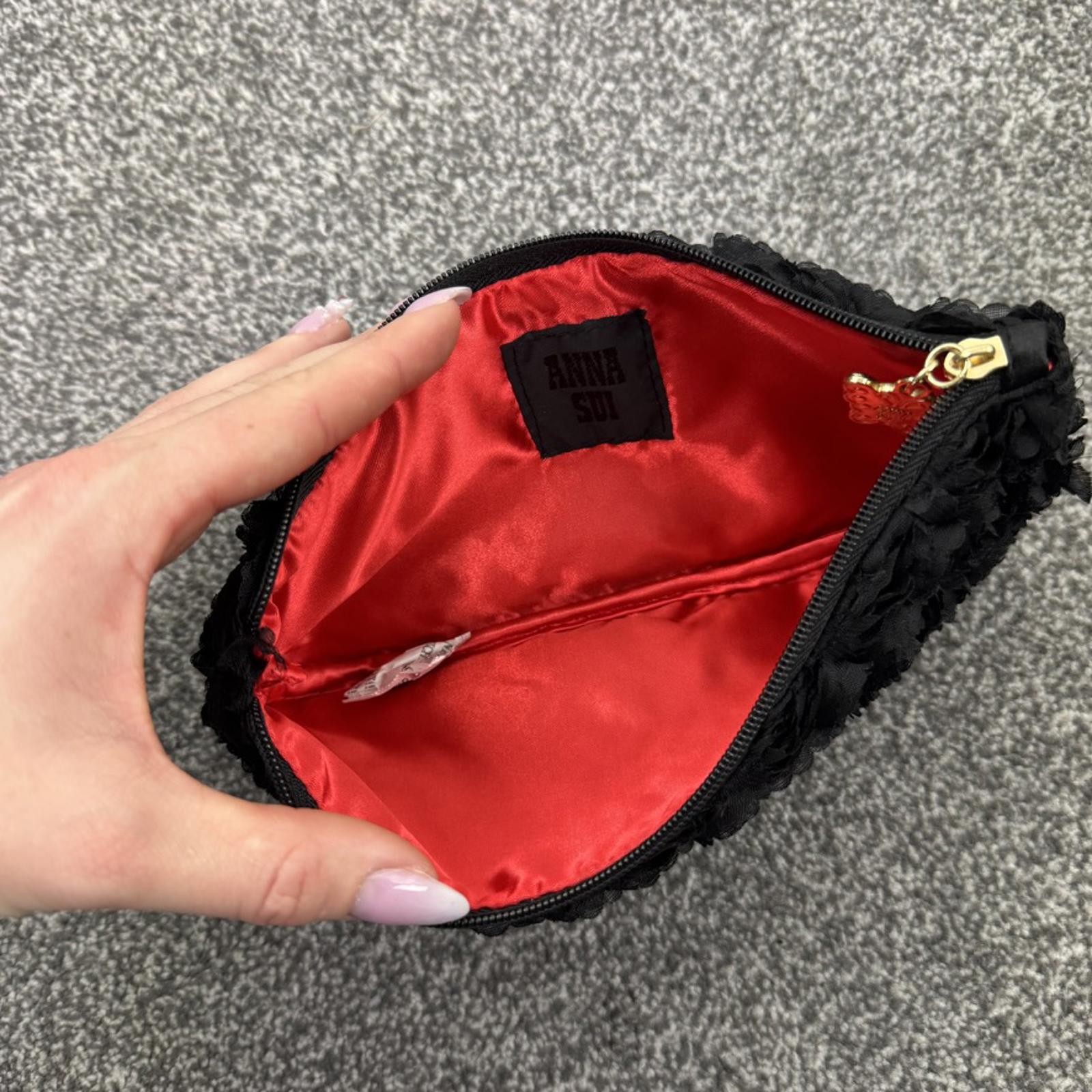 Anna Sui 3D rose floral makeup bag cosmetic gold butterfly zipper closure