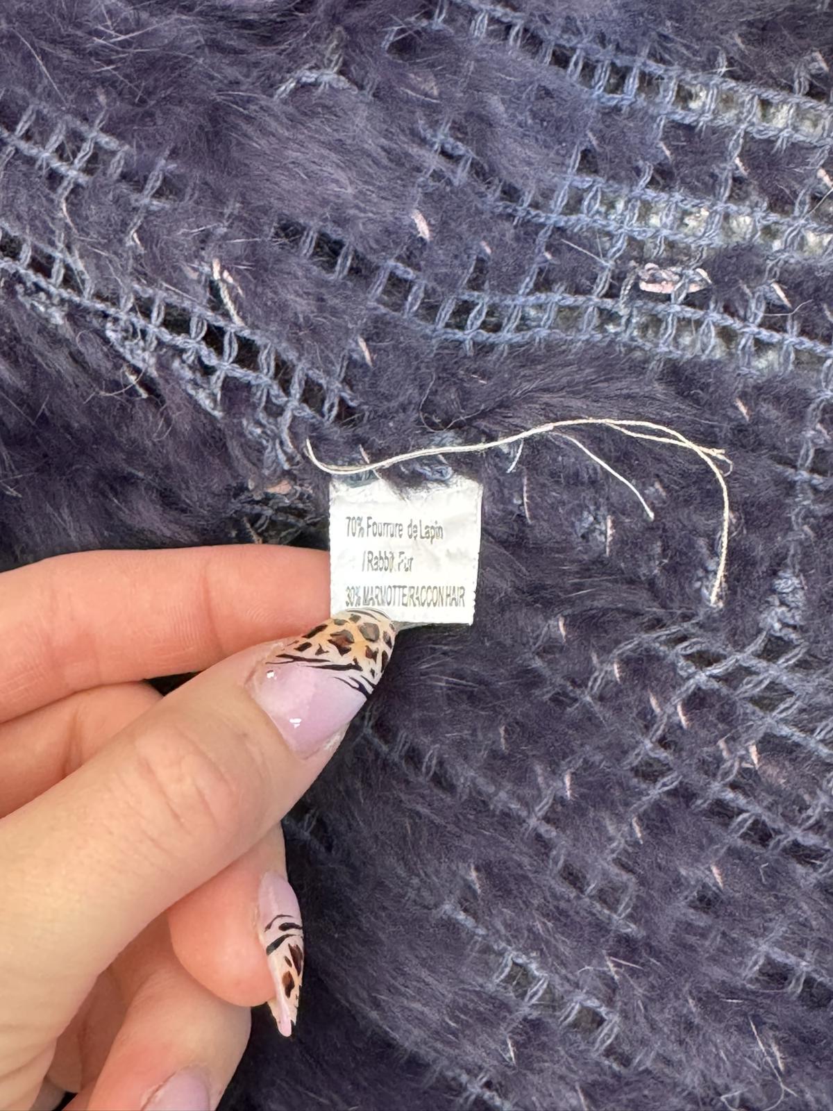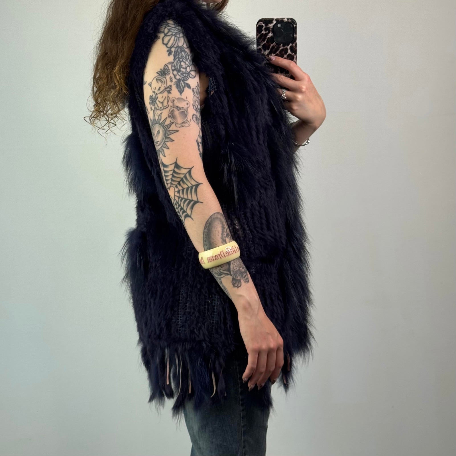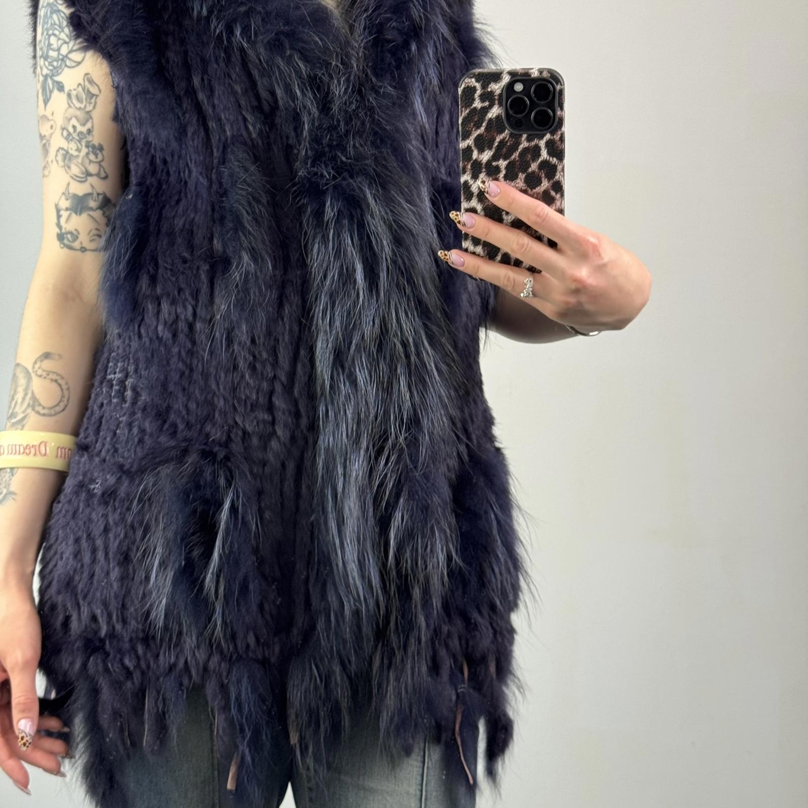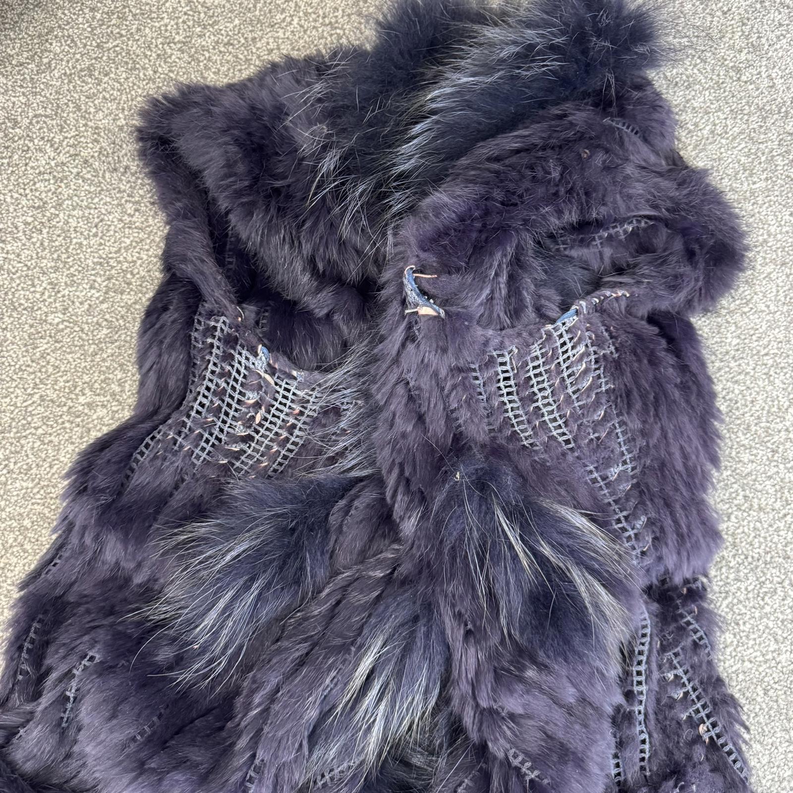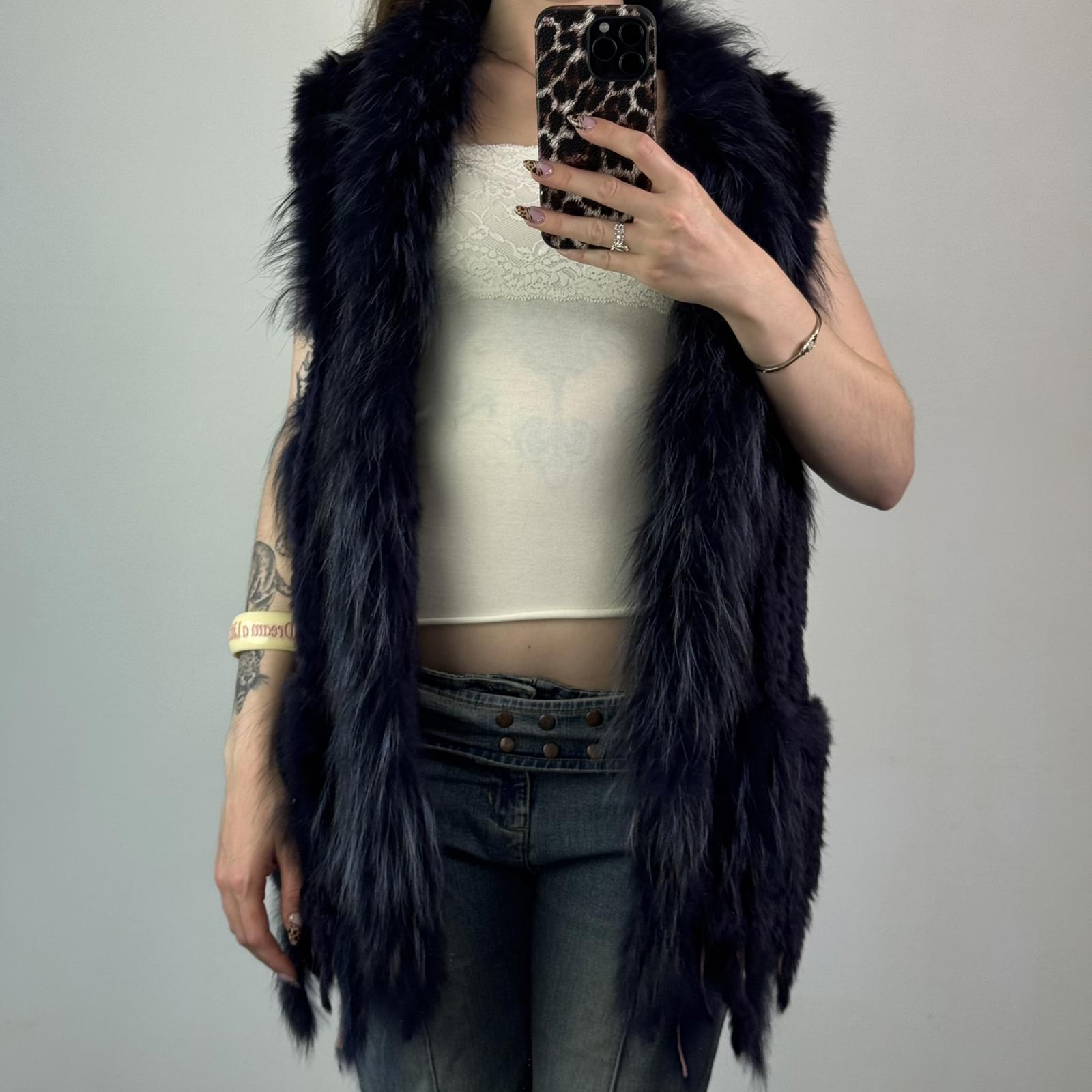 Genuine rabbit/ racoon fur sleeveless jacket gilet dark blue navy side pockets
