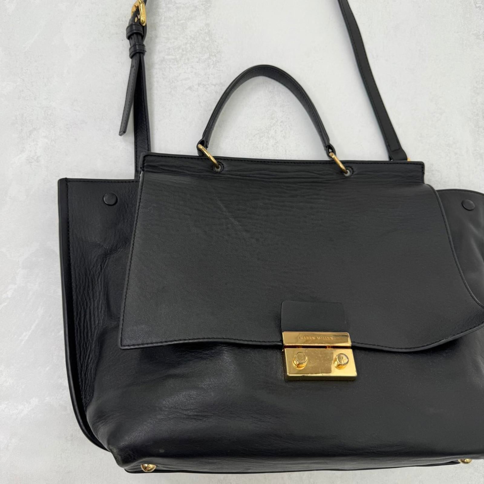 Karen Millen genuine cow leather handbag crossbody strap large work office black