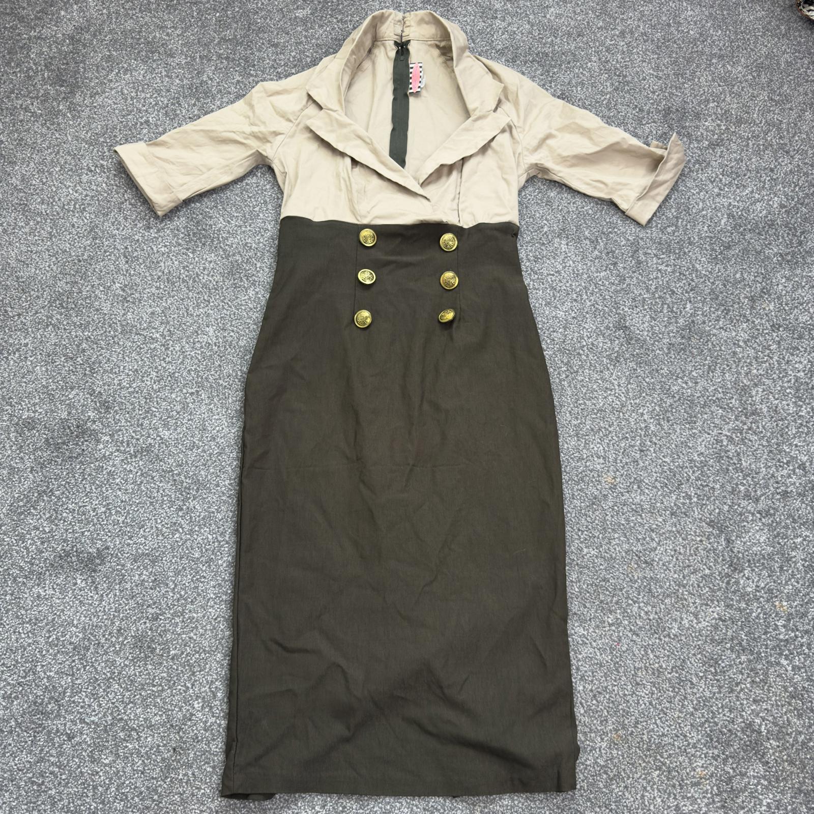 Pinup Couture military dress midi rockabilly stretchy fitted khaki beige