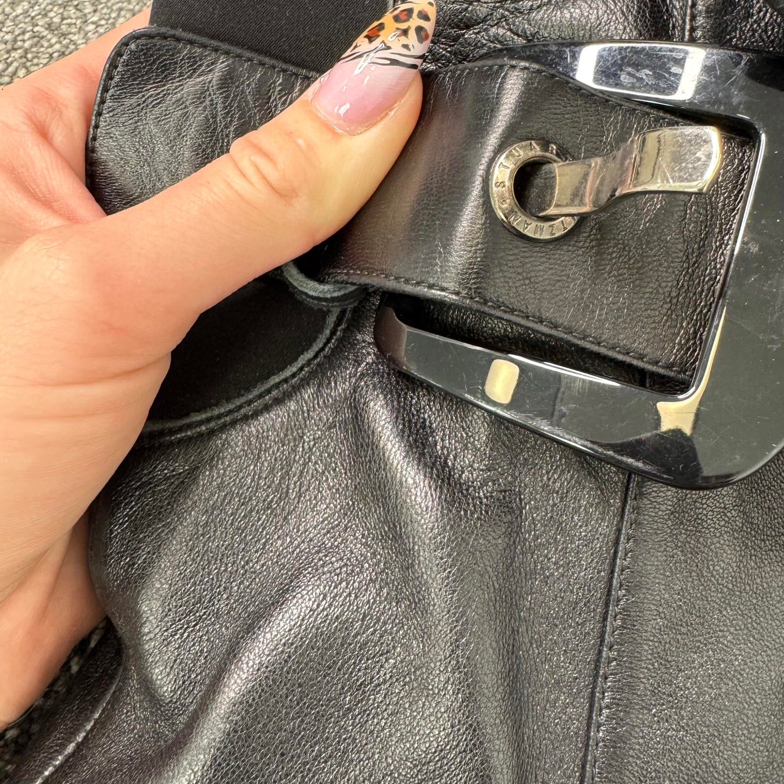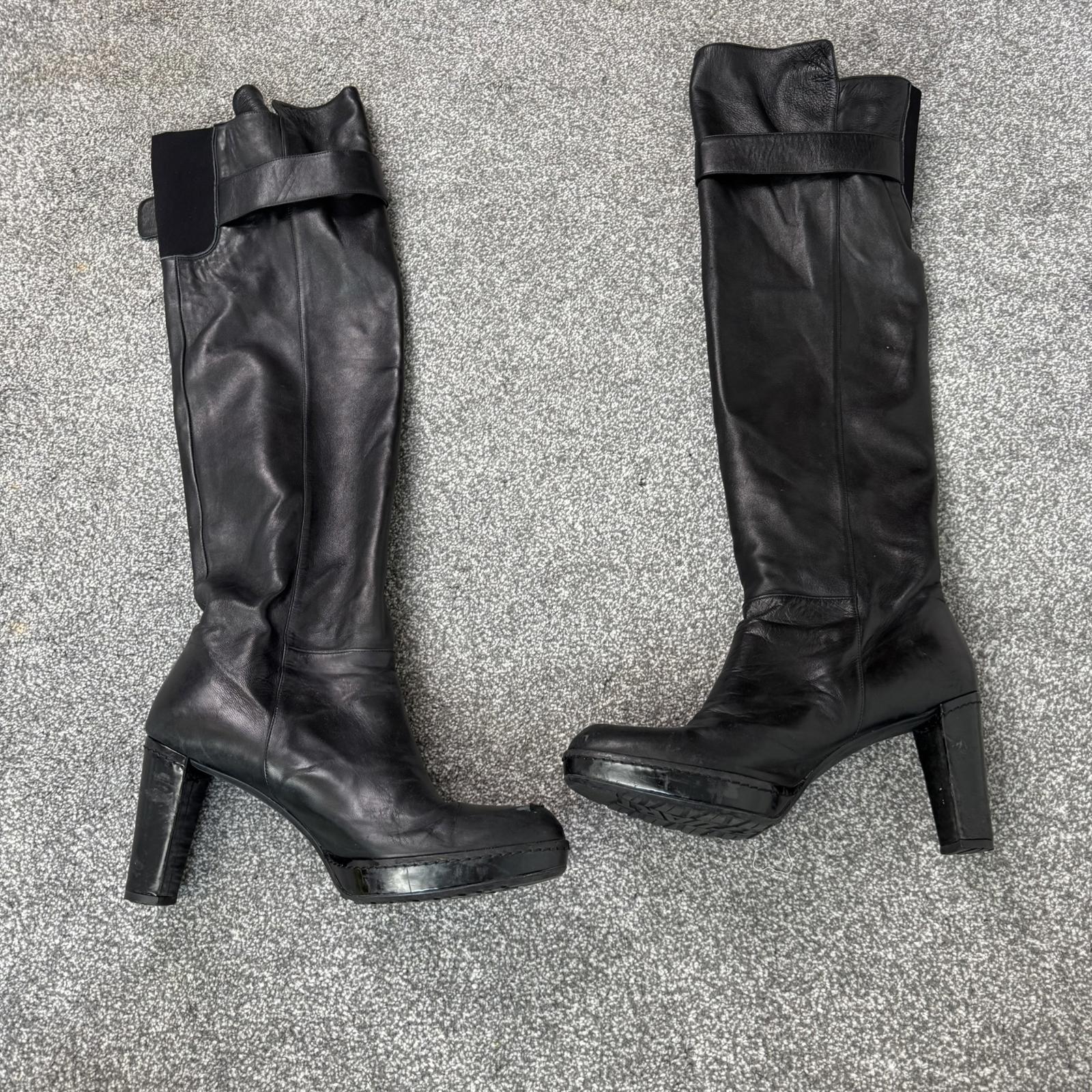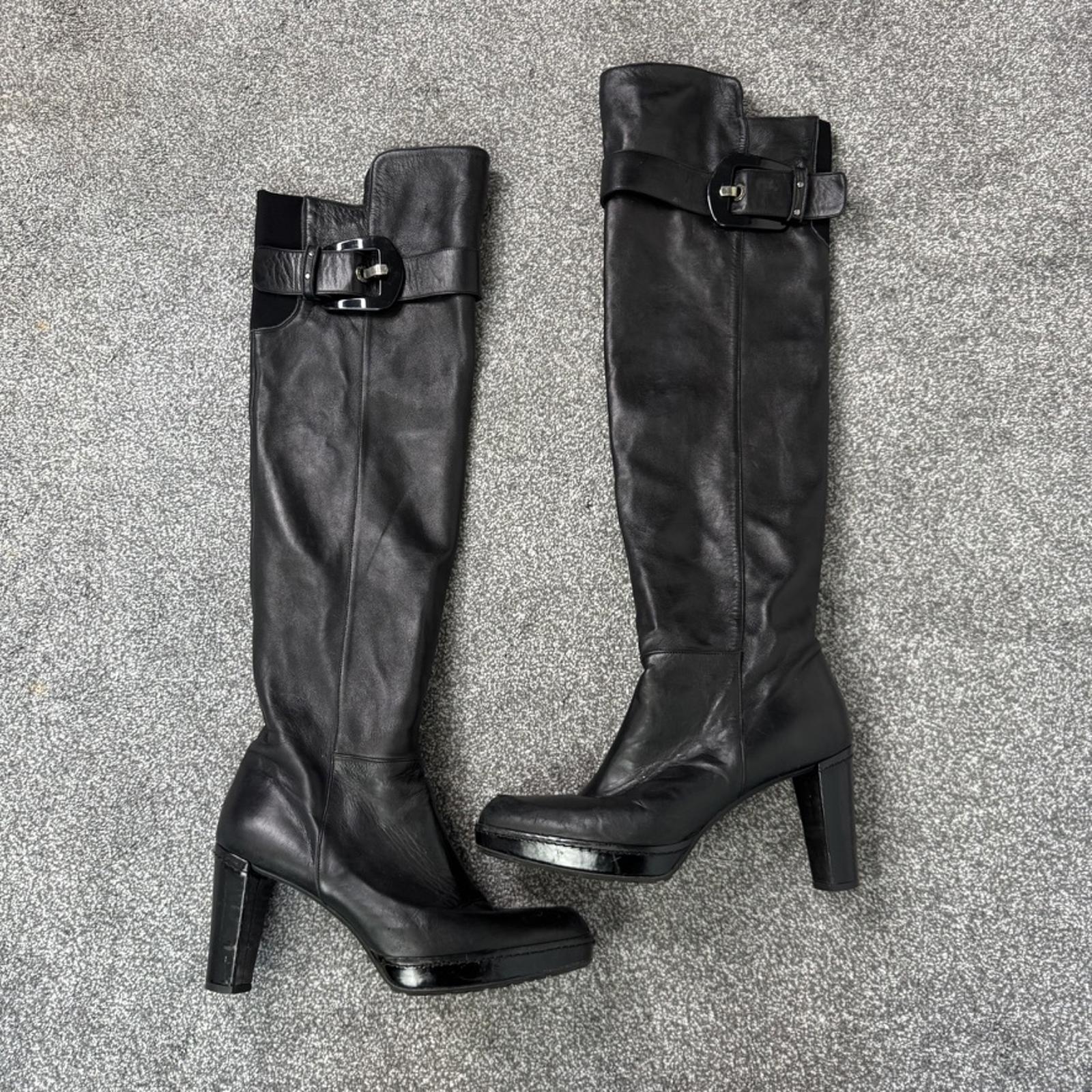 Stuart Weitzman black nappa leather over the knee buckle up boots heeled UK 8