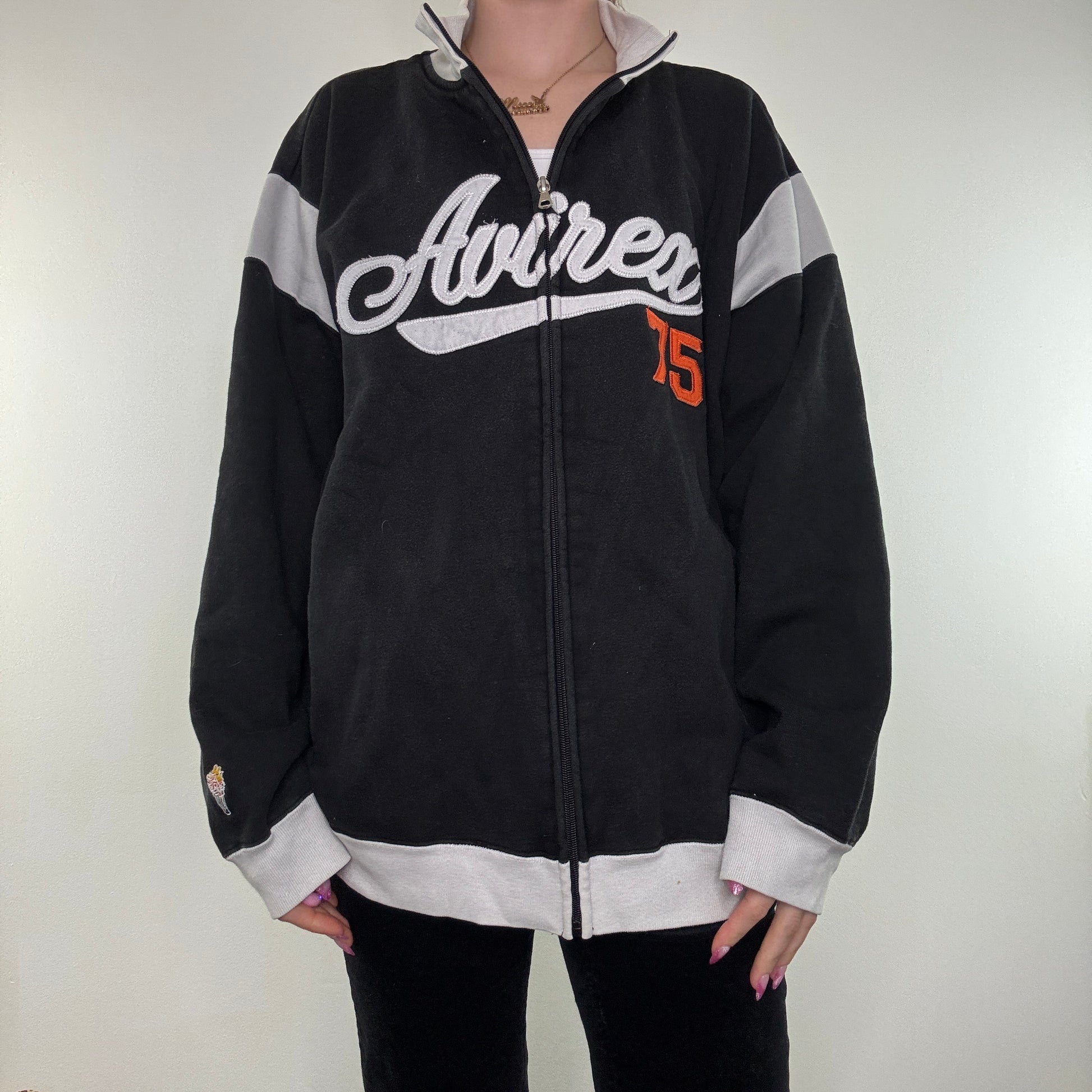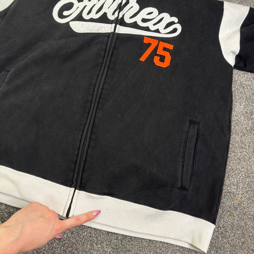 Vintage Avirex jumper zip up spell out embroidered contrast stripe 90s Y2K