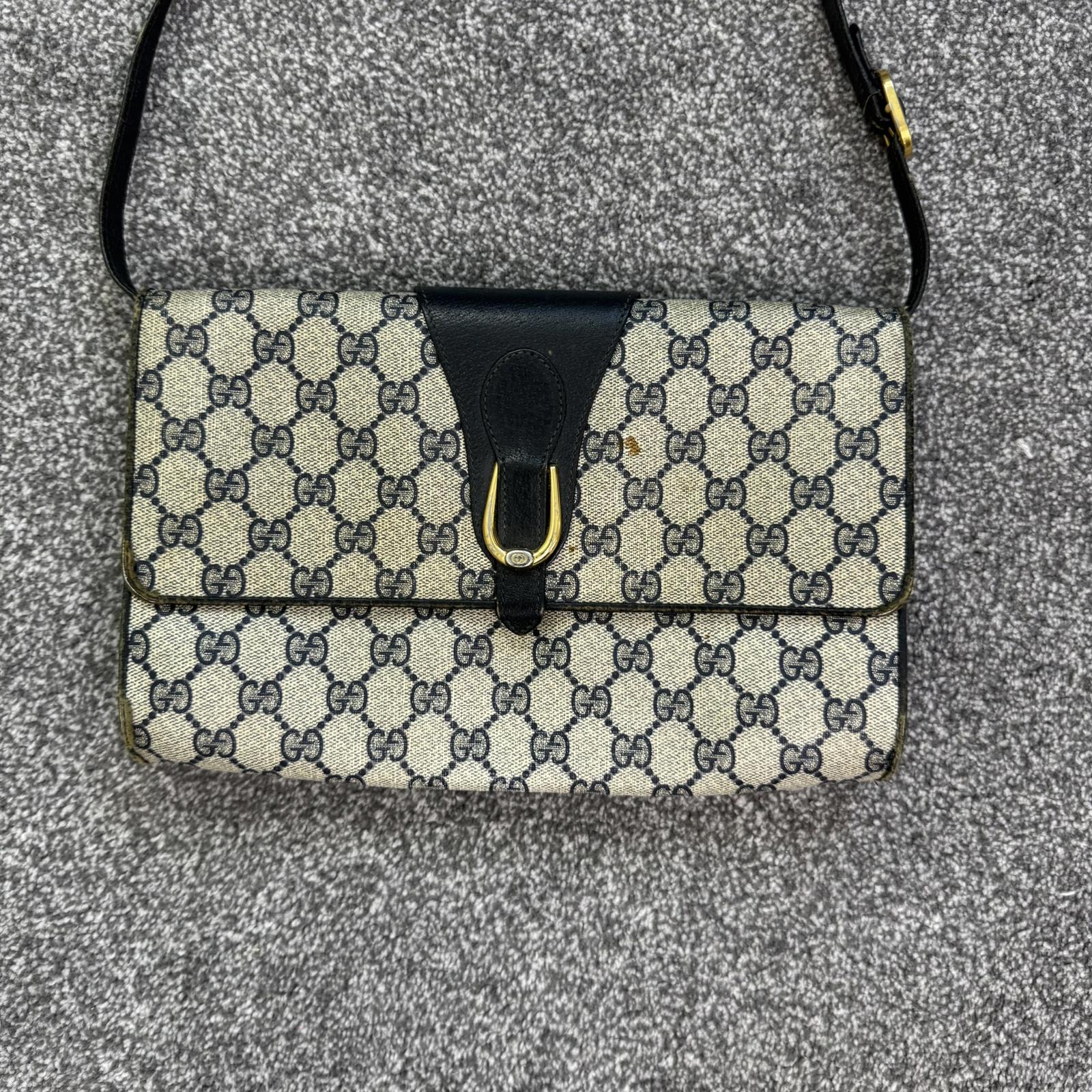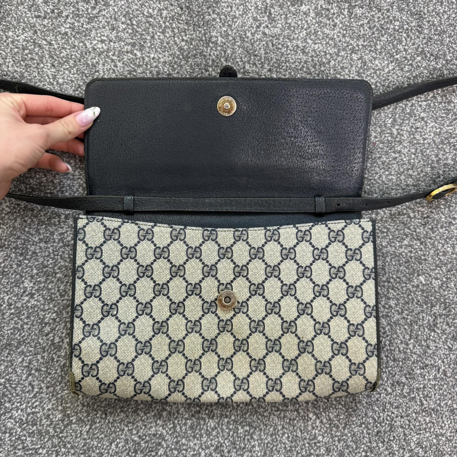 Vintage Gucci Ophidia canvas crossbody bag monogram navy blue cream clutch