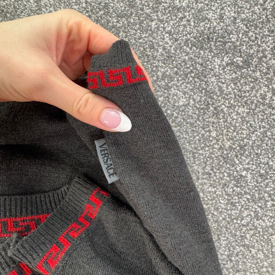 Vintage Versace Jeans Couture grey fine knit v neck jumper