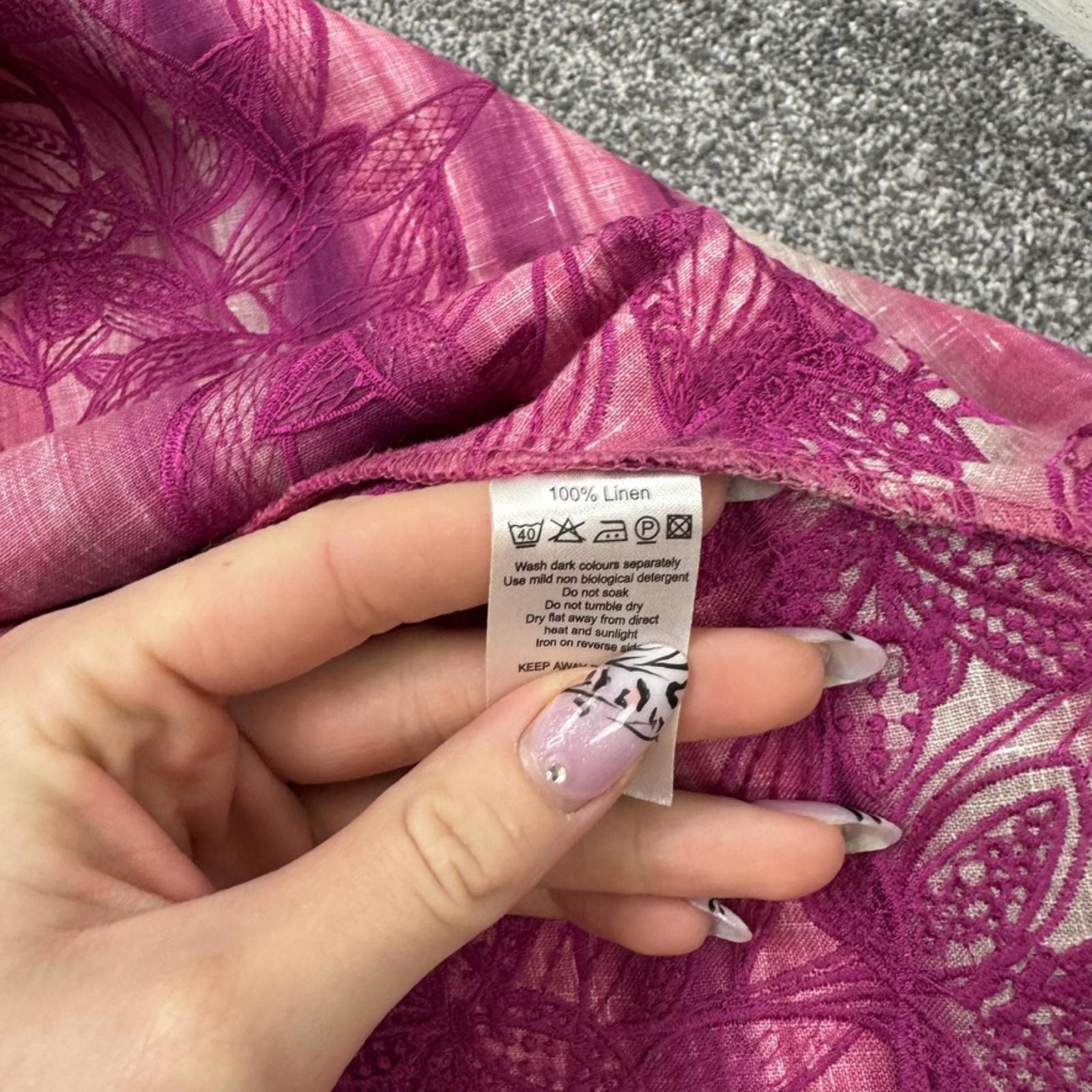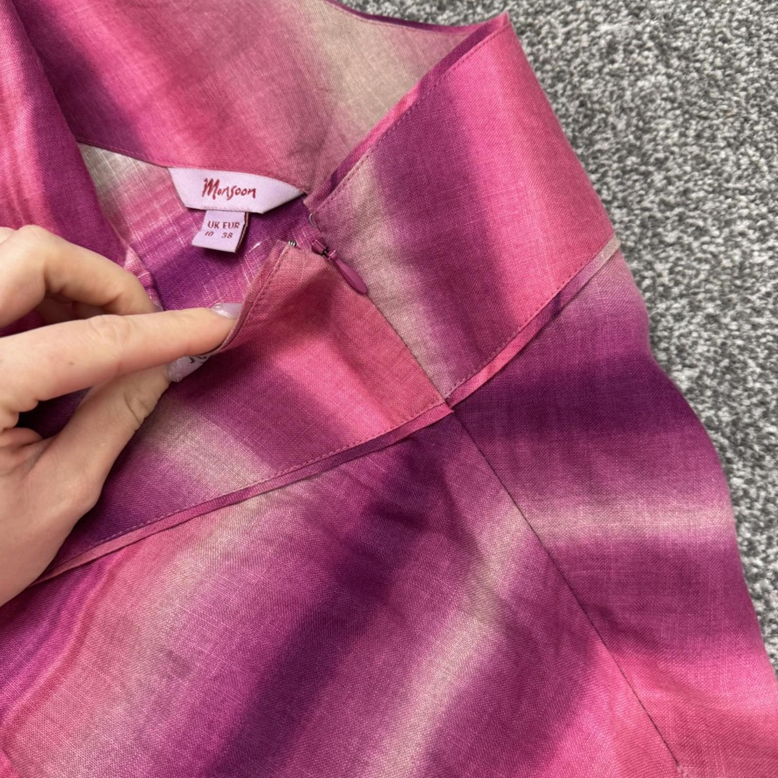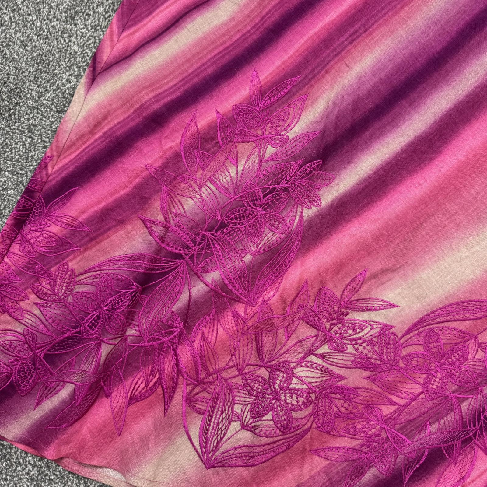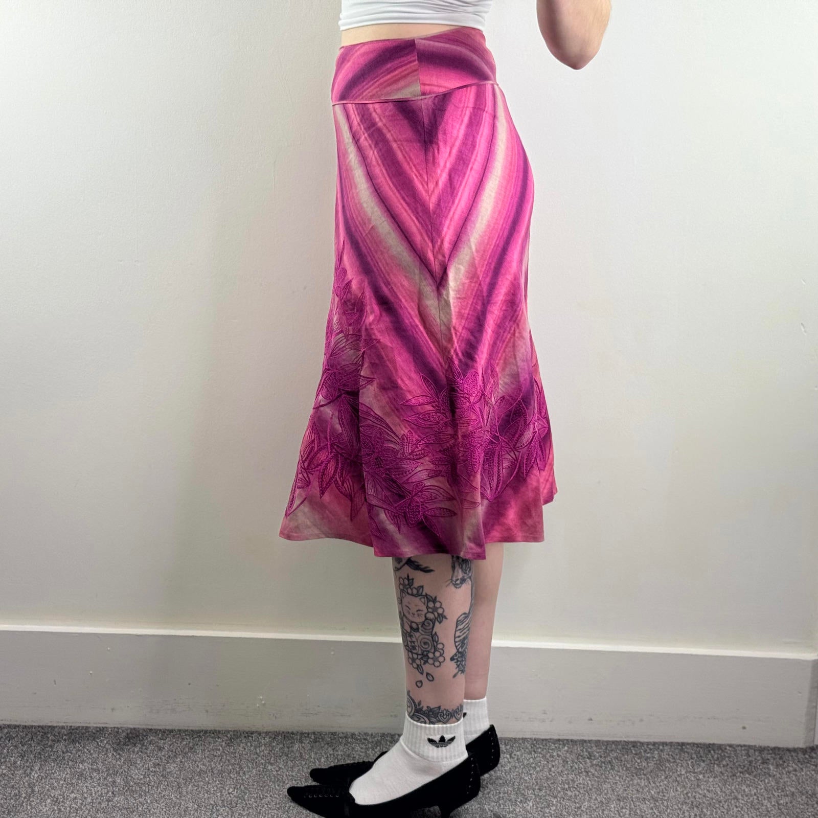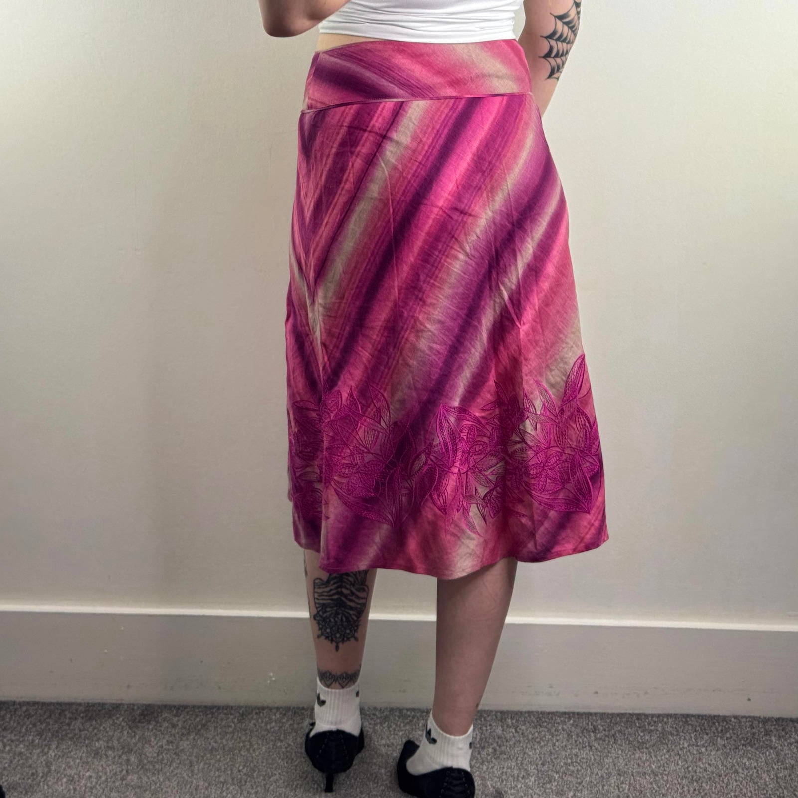 Y2K vintage 100% linen stripe midi skirt a line knee length floral embroidered