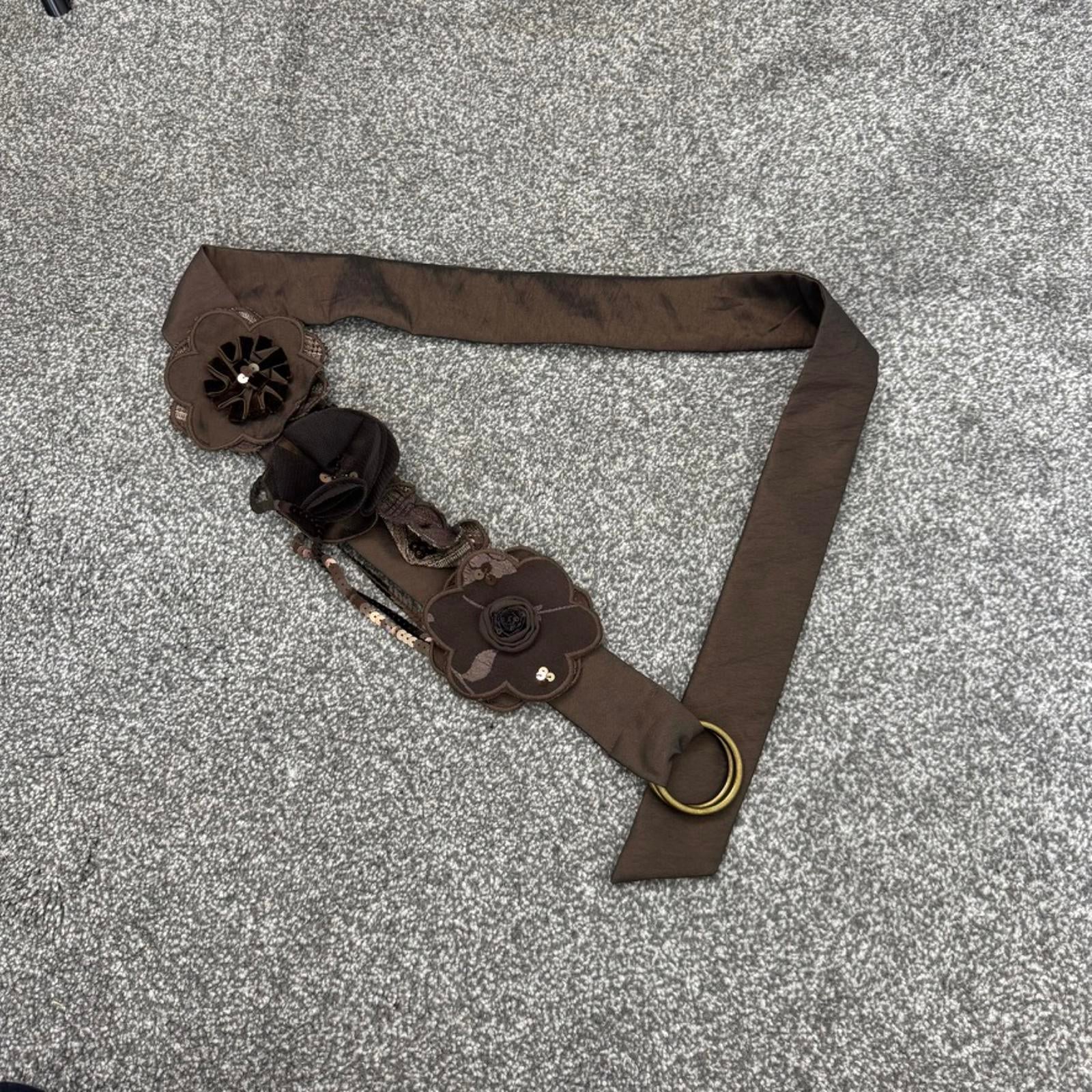 Y2K vintage adjustable floral 3D satin sequin belt embellished o d ring tartan