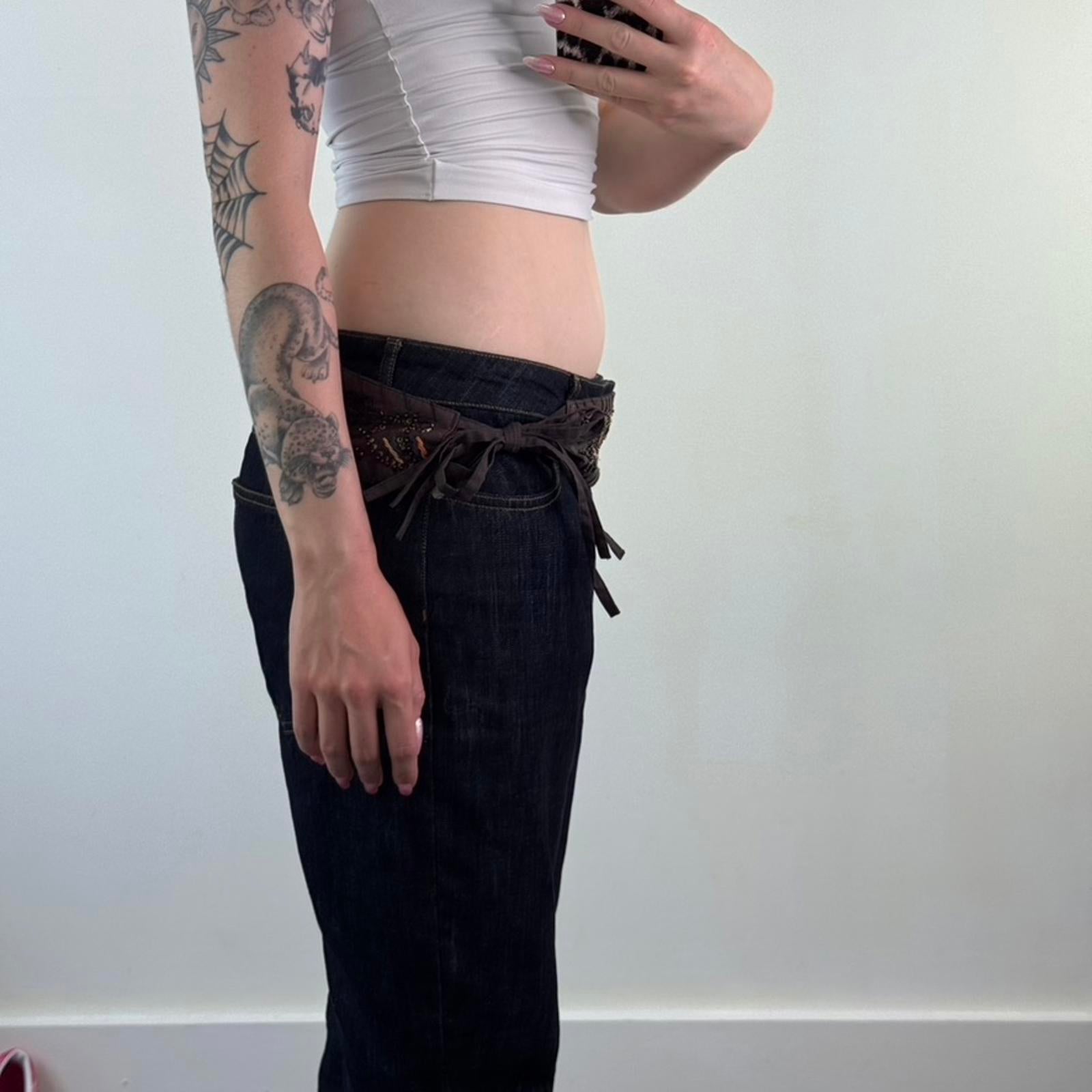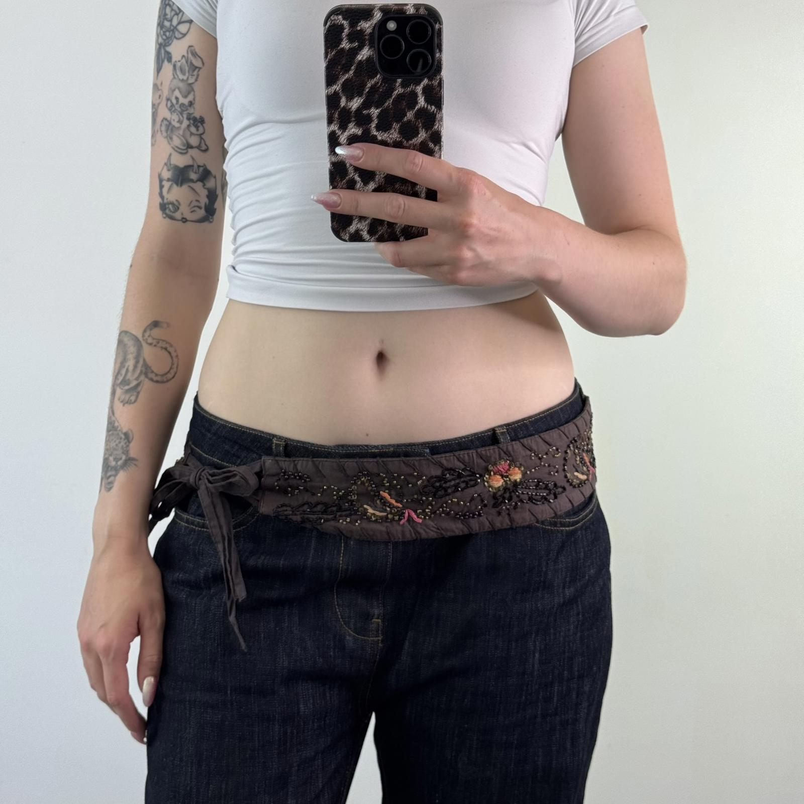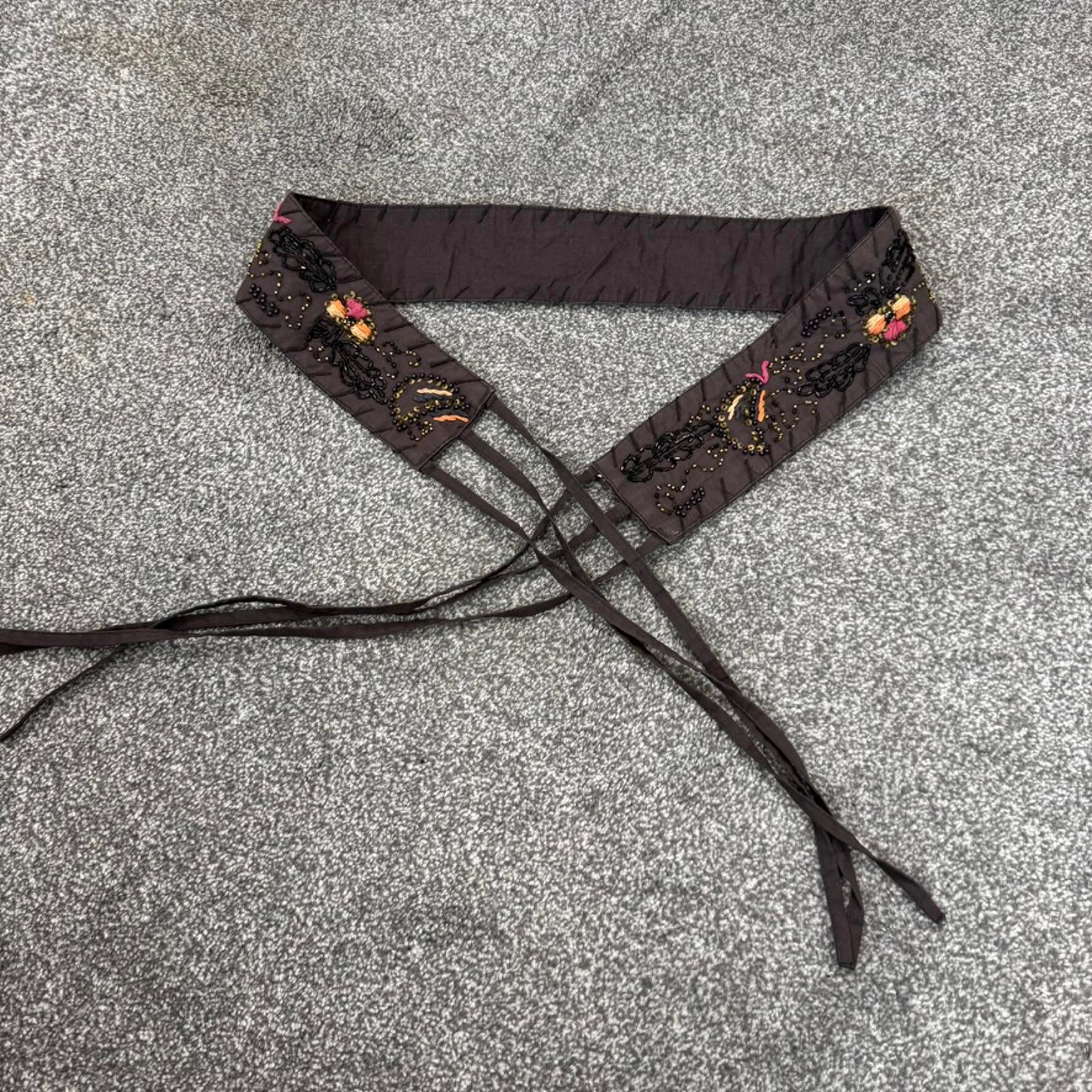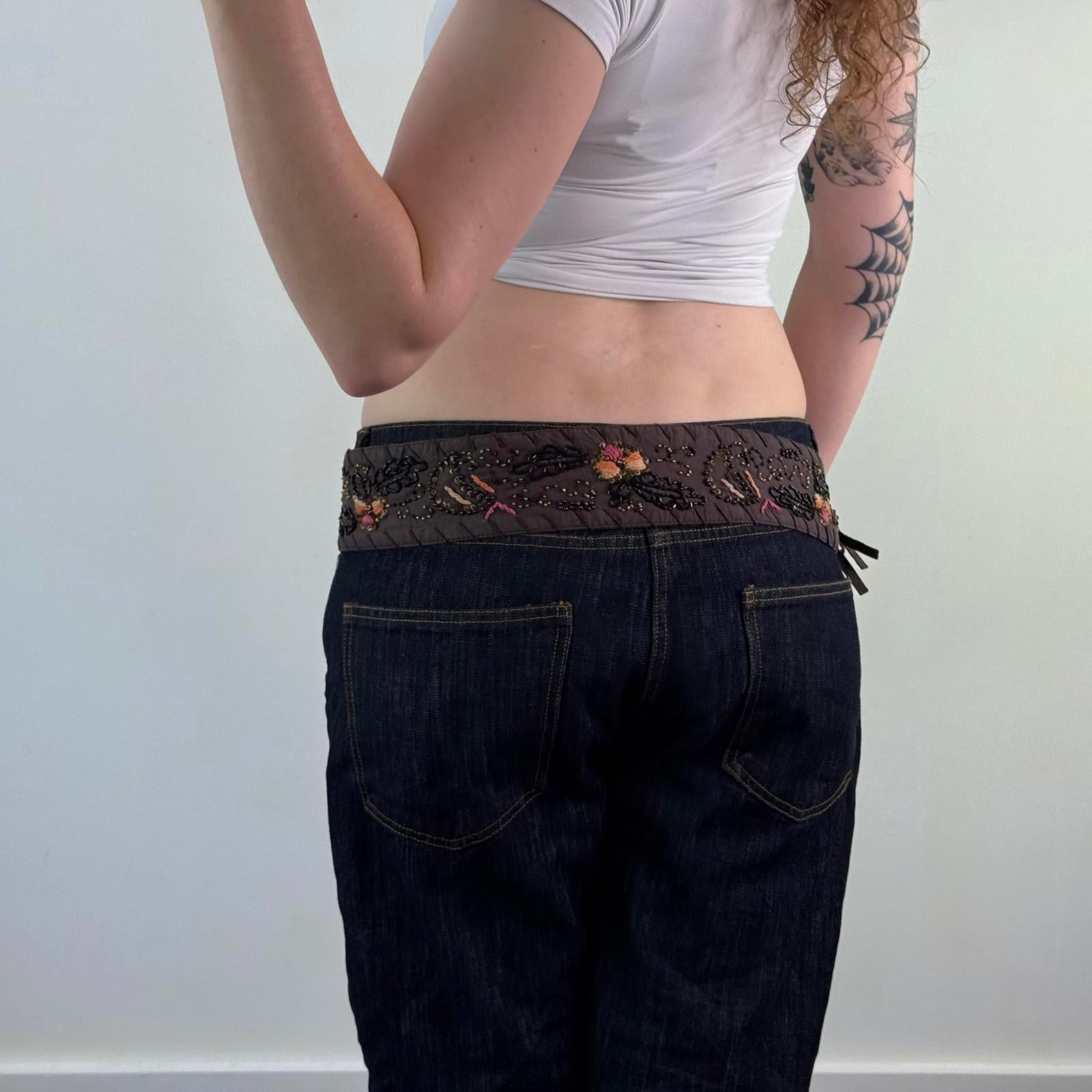 Y2K vintage adjustable floral belt sequin embroidery boho festival tassel bow