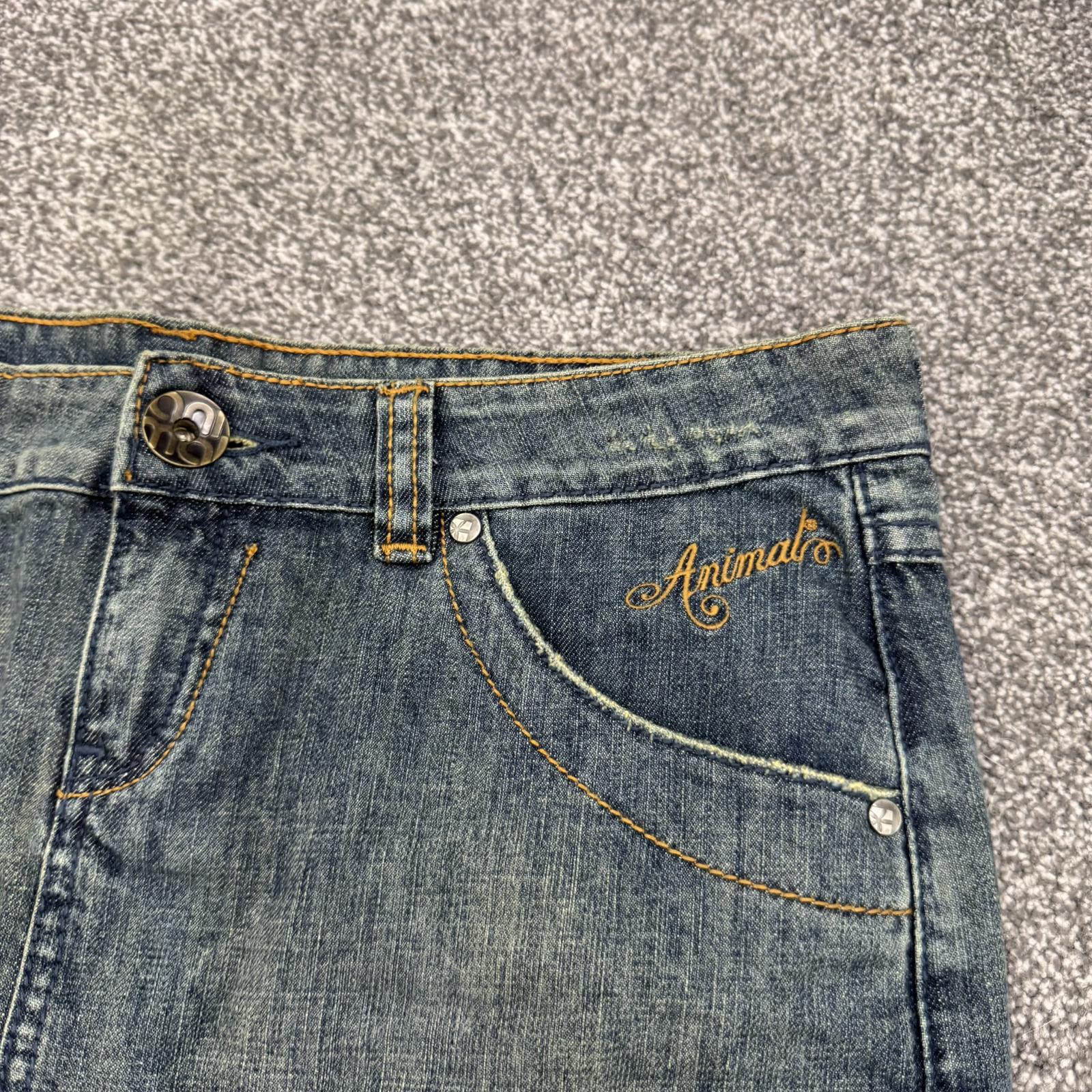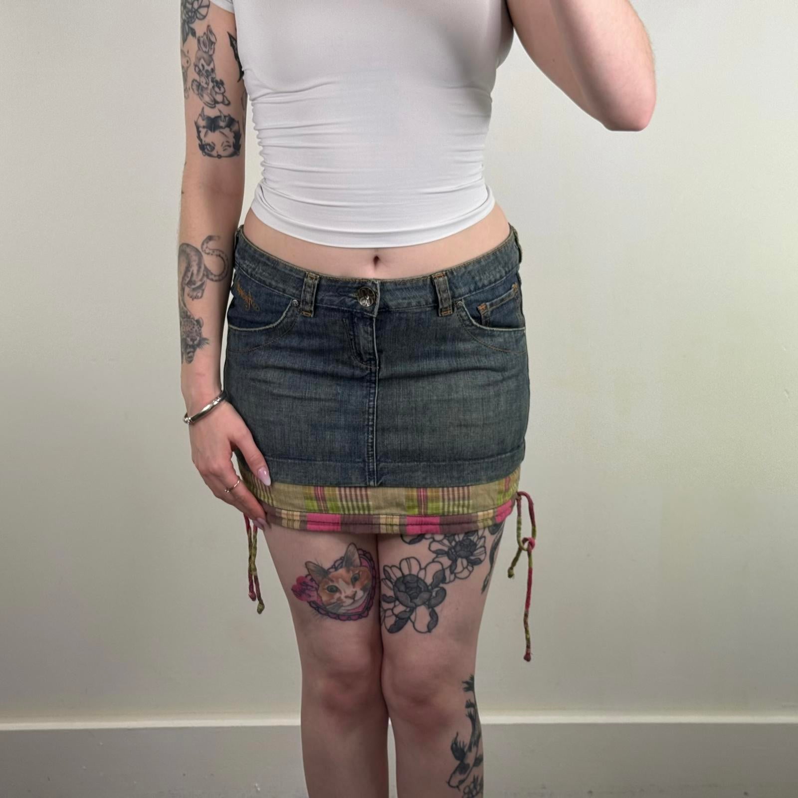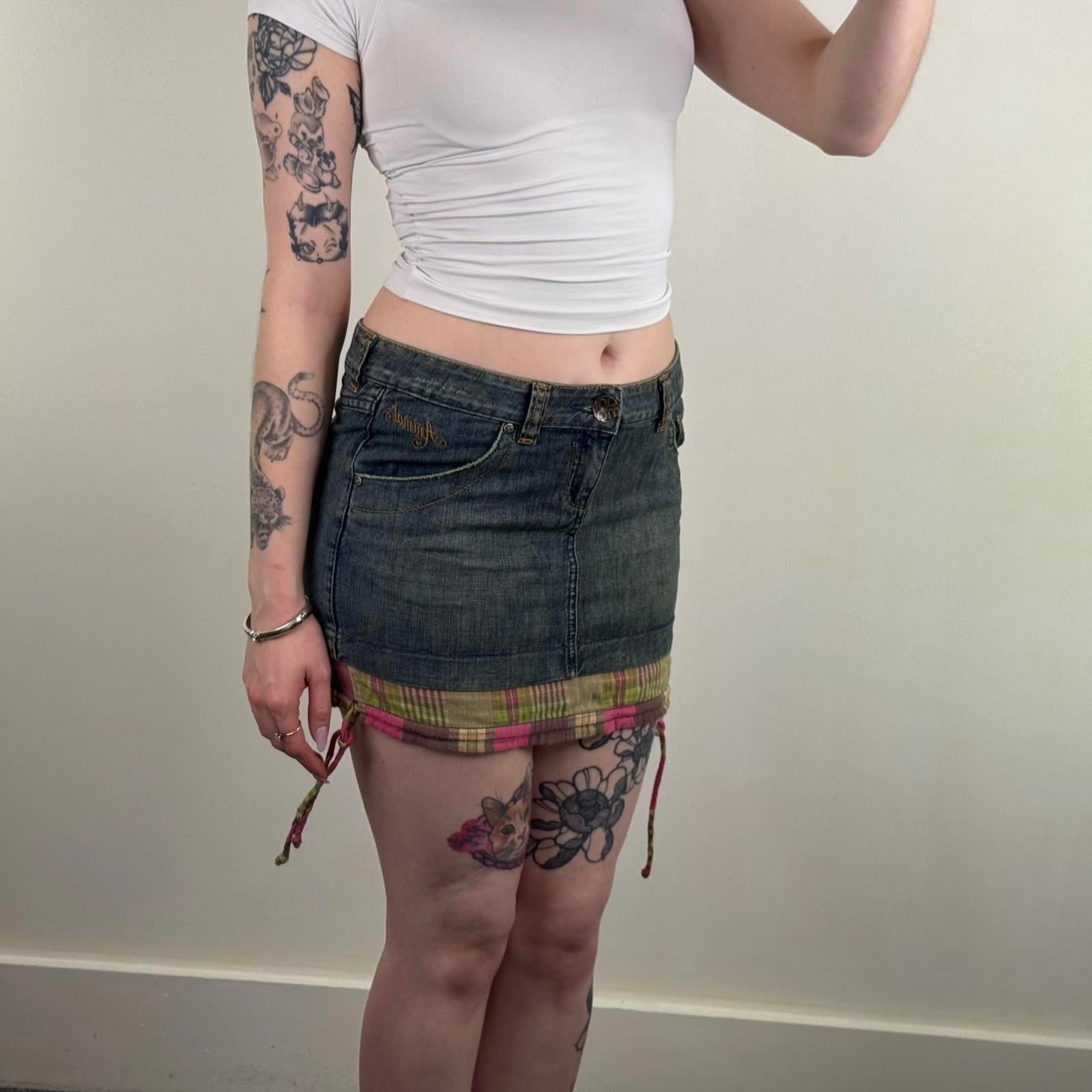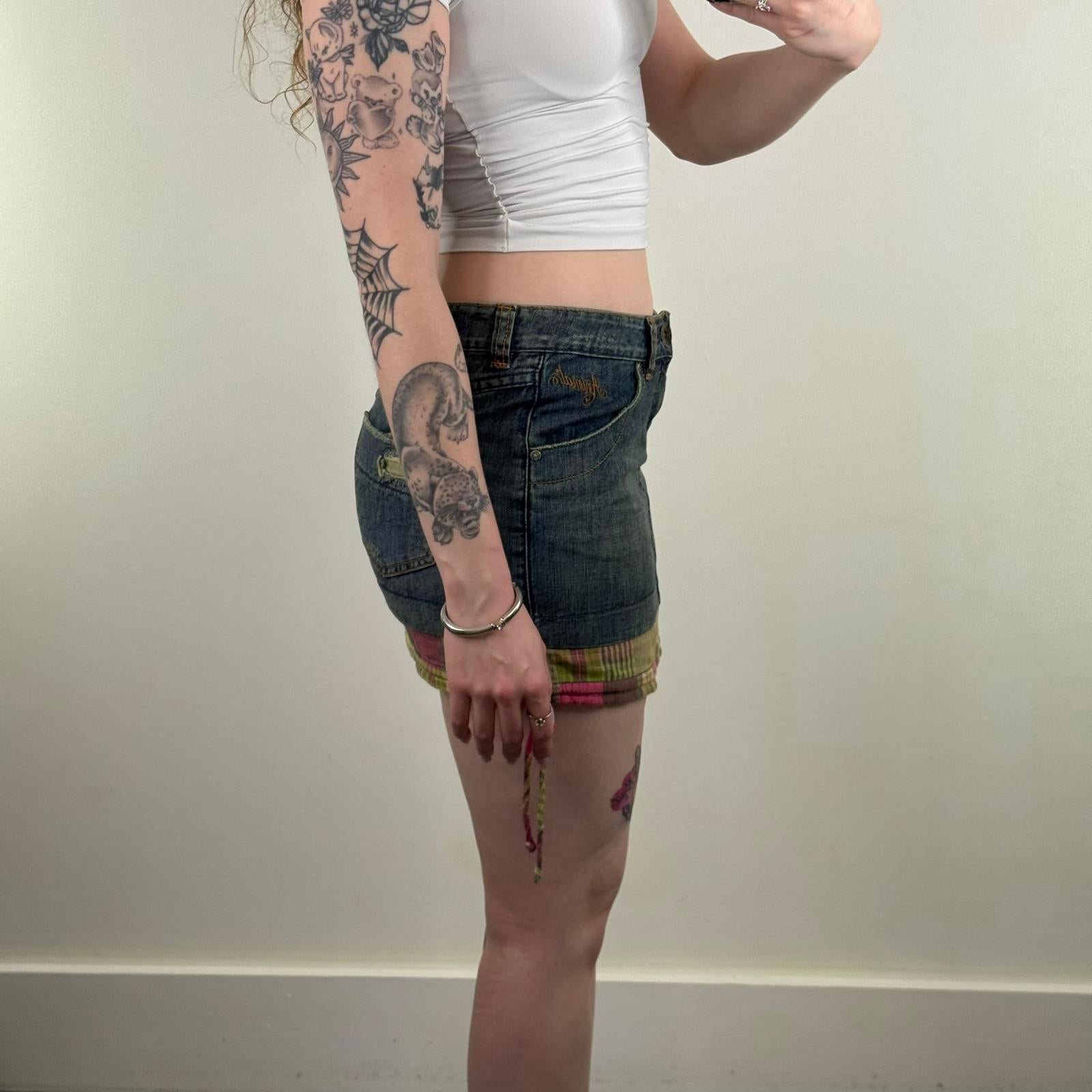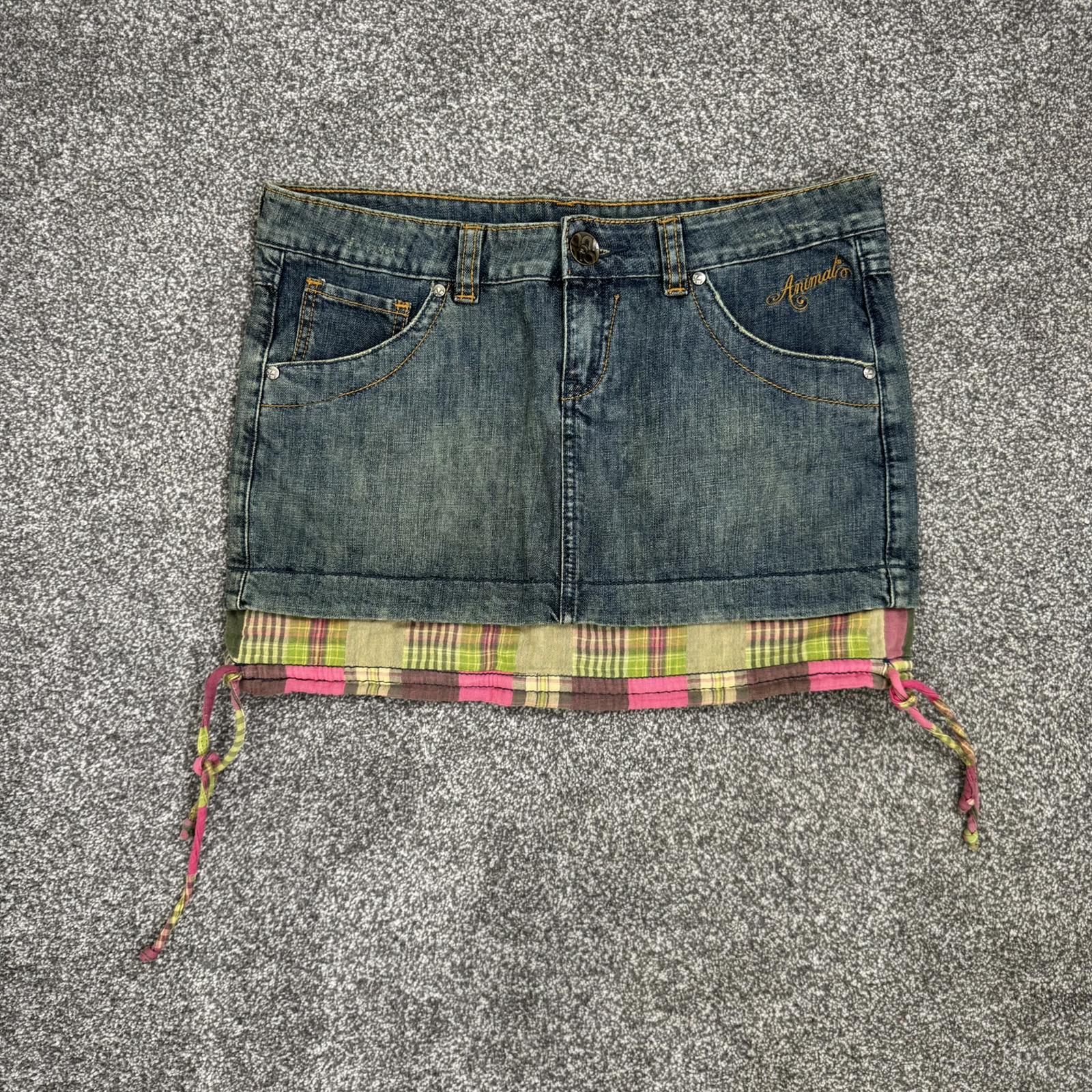 Y2K vintage Animal denim mini skirt mid rise tartan plaid check hem distressed